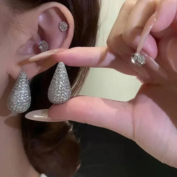 ファッションジュエリー女性光沢ステンレス鋼厚いジルコン象眼涙ピアス イヤリング女性のためのビンテージのがっしりしたドームのドロップします。