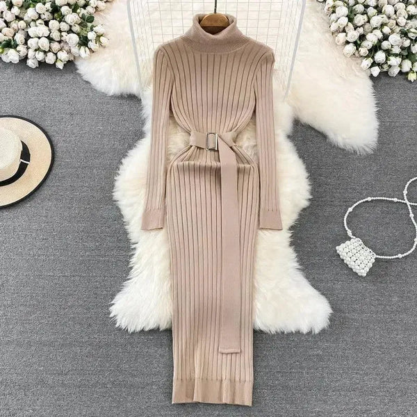 伸縮性のあるタイトフィット・ニット・ブタドレス