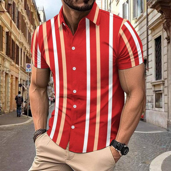 カジュアルストライププリント半袖シャツサマーラペルオリーブグリーン / 3XL