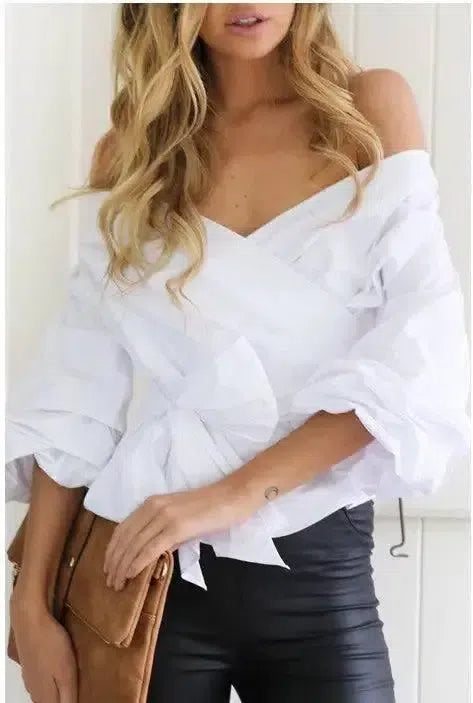- 服のタイプ:ブラウス デザイン:クロスレースのディテール 着丈:クロップド丈 袖丈:長袖 ネックライン:Vネック フィット:スリムフィットスタイル:カジュアルでトレンディ