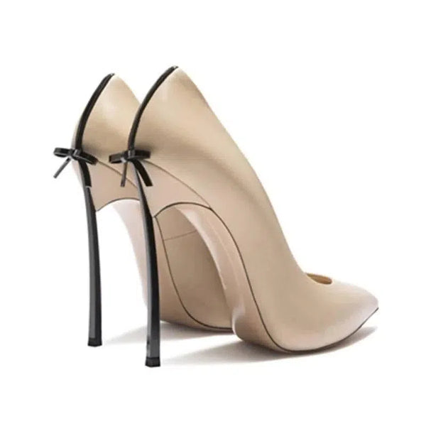 女性パンプスポインテッドトゥボウタイ細いハイヒール