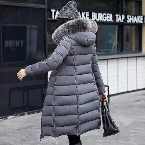 - ネックライン/ショルダースタイル: ファーで縁取られた襟のフード付き