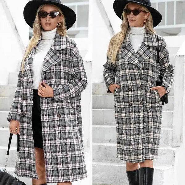 スーツカラー、ダブルブレストのカシミア・ロングコート
