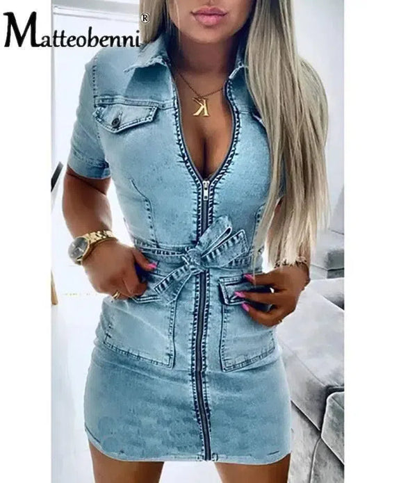 - ガーメントタイプ:デニムワンピース 開閉: ファスナー・フロント開閉方法 前開きファスナー ネックライン:ネックライン: Vネック