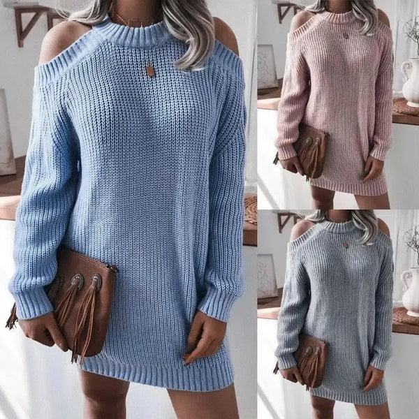 ニット カレッジセーター セーター レディース ロング ブルー グレー