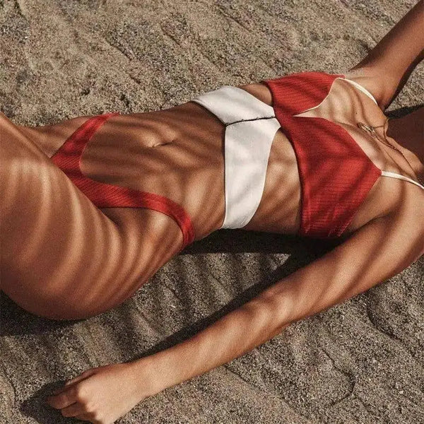 - 水着のタイプ: ビキニ水着 デザイン:動きやすさと美しさを高めるスプリットスタイル