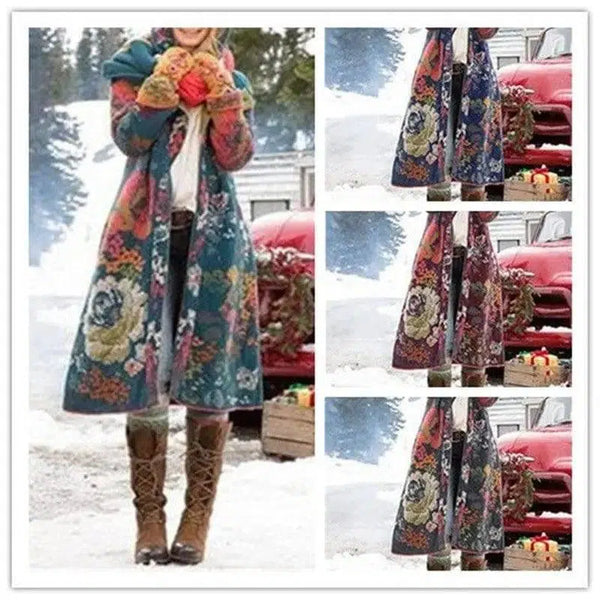 商品の説明:レディースコートスタイルプリントミドル丈フード付き厚手