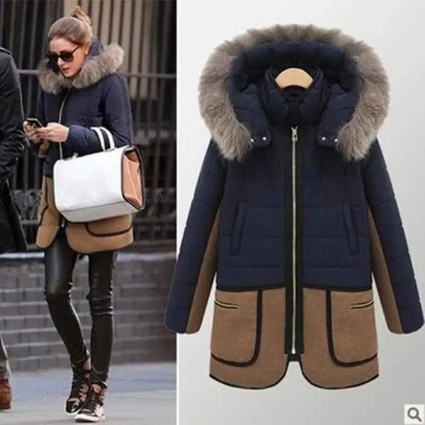 商品の説明:スリムプラスサイズフード付き中綿コート