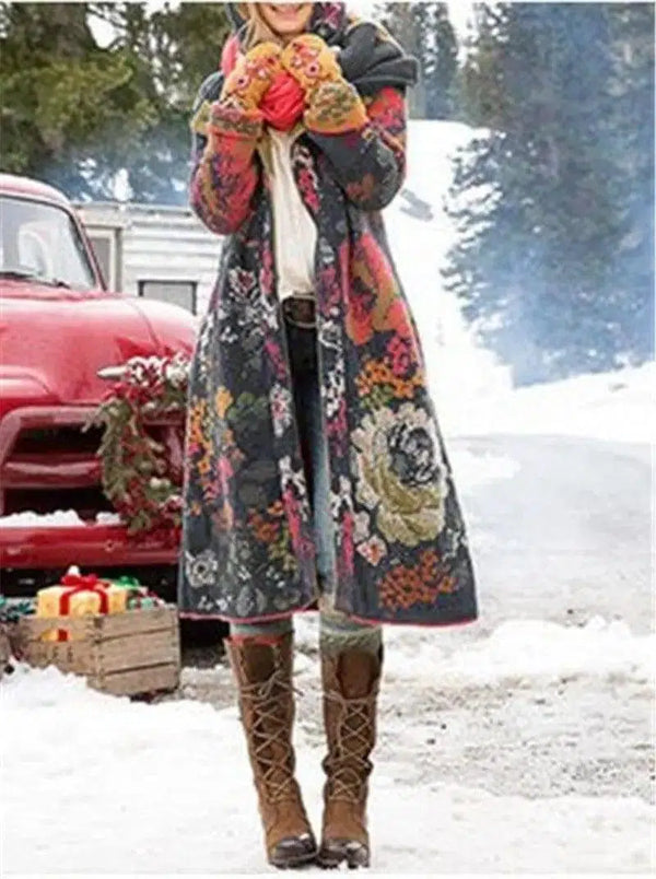宮廷風プリントフード付き厚手プラッシュジャケット