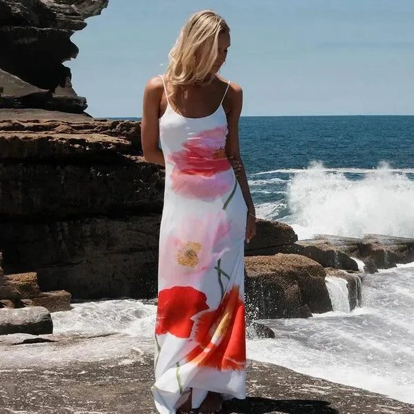 プリント ホルター マキシ ドレス - サマー ビーチ パーティー ウェア