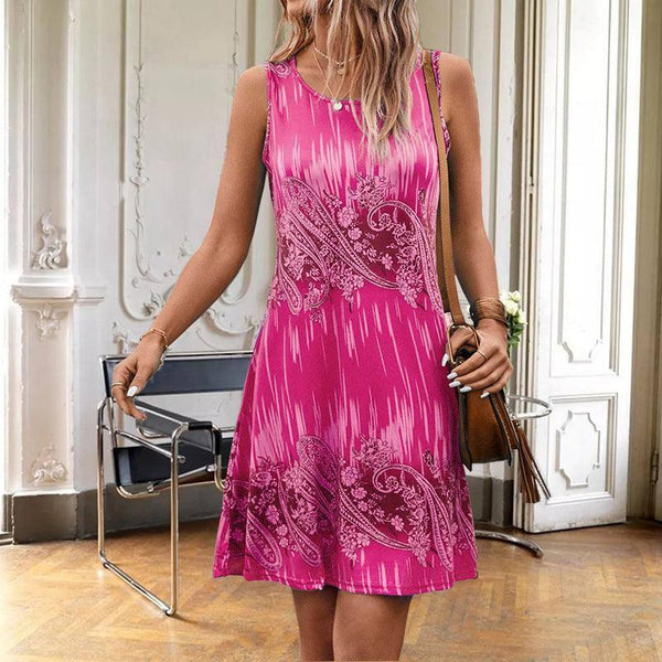 製品の説明:ベストラウンドネックデジタル印刷ドレス