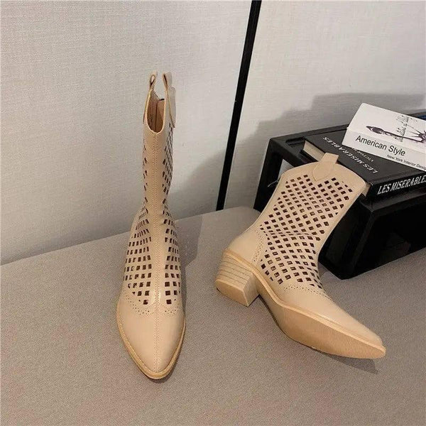 尖った西洋のカウボーイブーツ女性厚い中空騎士