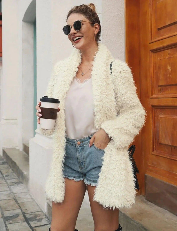 - ガーメントタイプ:ジャケット 素材:プレミアムフェイクファー 長さ:ミッドレングスデザイン袖丈:長袖スタイル:シックでファッショナブル時:カジュアルな外出やレイヤリングに最適です。