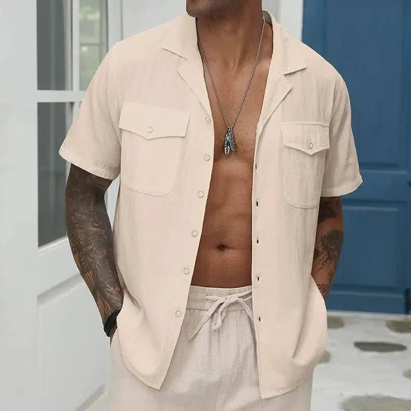 メンズ・カジュアル・ルーズ・ソリッドカラー・ポケットシャツ