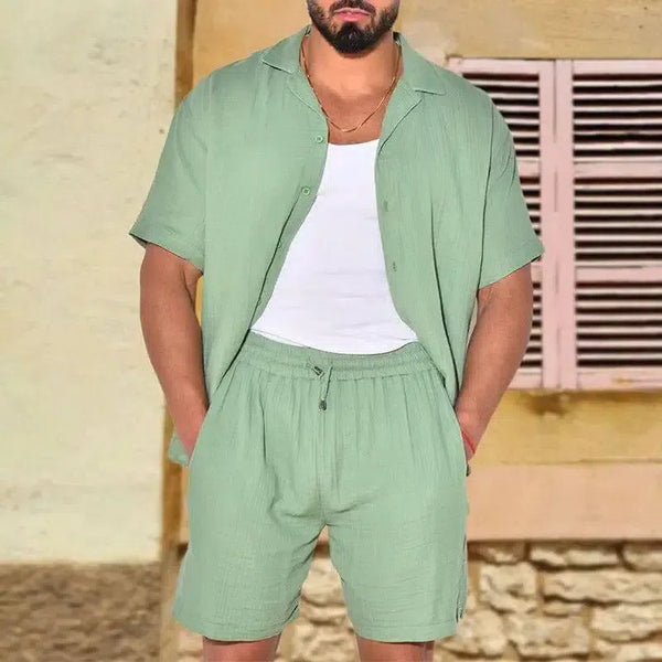 メンズ・ルーズストレッチ・カジュアル・コットンリネン・ツーピース・スーツ