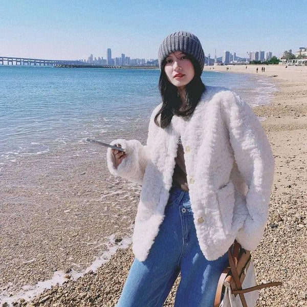 - ガーメントタイプ ラビットファーコート ネックライン:ラウンドネック