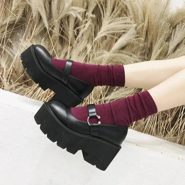 ラウンドバックルレトロプラットフォームプラットフォームシューズ