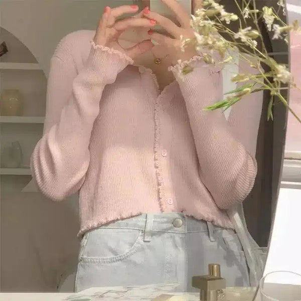 - 魅力的なボタン留め:カーディガンのフロントには繊細なボタンが並び、機能性と魅力の両方を提供します。