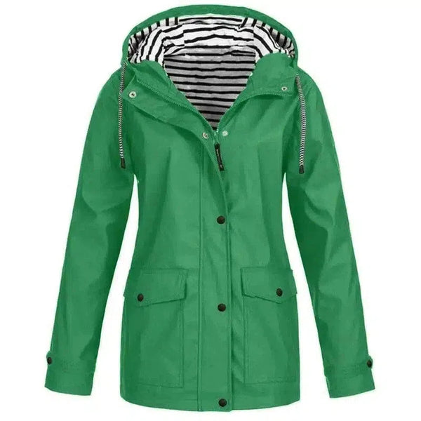 ポケット付きフーデッドカジュアルレディースジャケット
