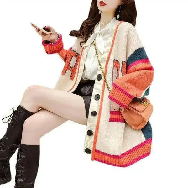 ウィメンズ・ストライプ・オーバーサイズ・ニット・カーディガン