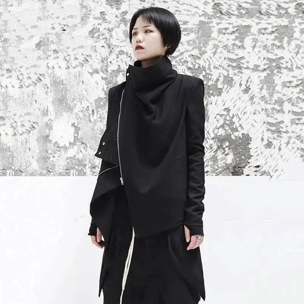 タートルネック長袖ブラック・ジップ・イレギュラーコート