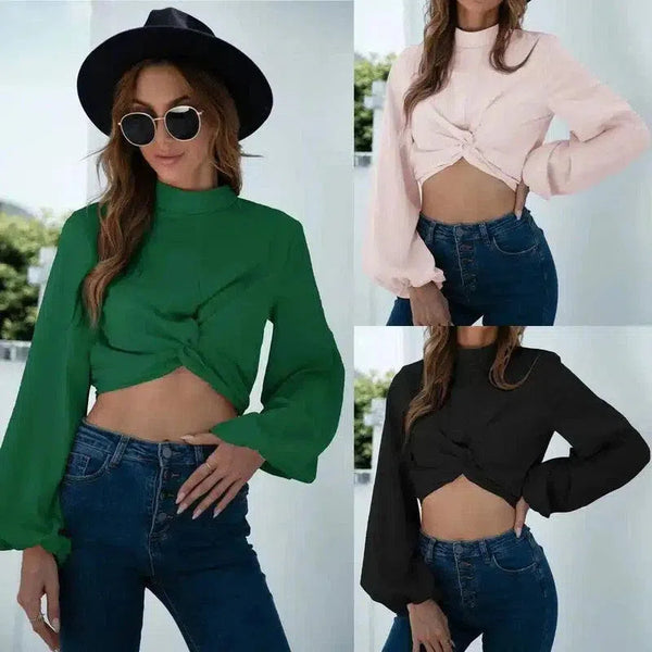 - 衣服の種類:クロップド丈長袖トップス 袖丈:袖口フレアの長袖