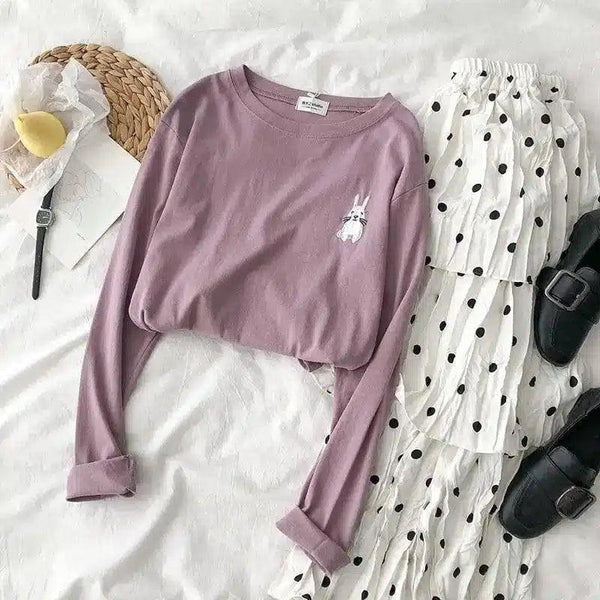 ネットレッドアニマル刺繍ラウンドネックルーズ長袖