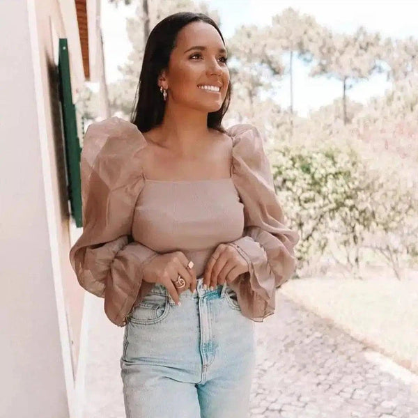 - 衣服の種類: エレガントなブラウス 袖丈:ボリュームのあるパフデザインのロングスリーブ