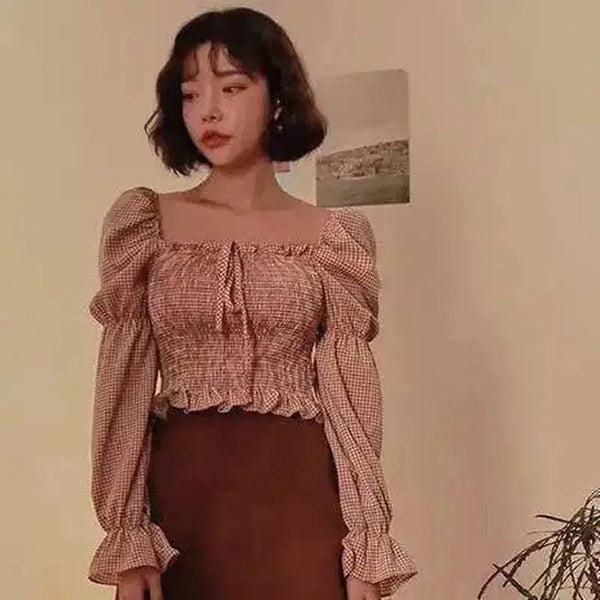- 衣服の種類:女性用ブラウス 袖丈:袖口フリル付きの長袖