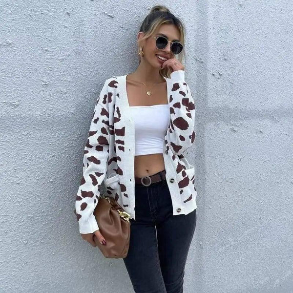 ヒョウ柄Vネックニットセーターコート