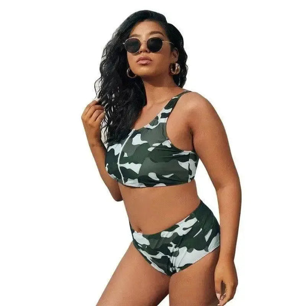 ファッション プラスサイズ カモフラージュプリント(ファスナー付