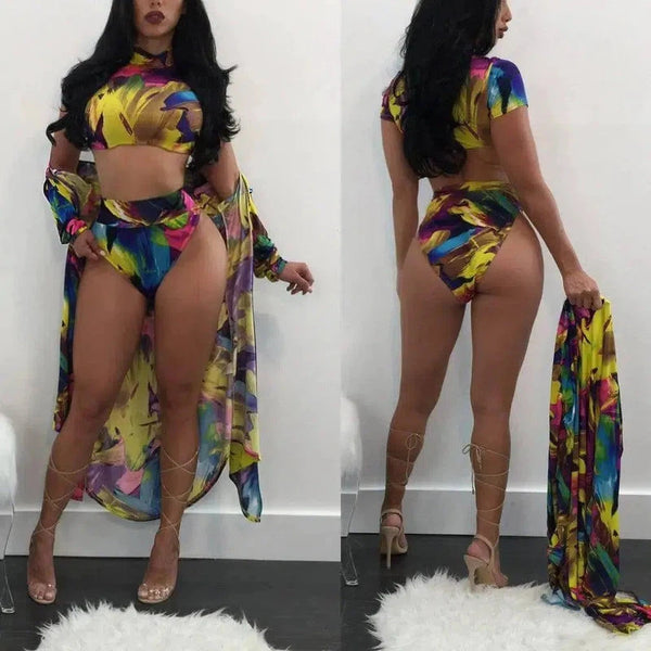 ファッション印刷スーツブラウス+日焼け止めビキニ