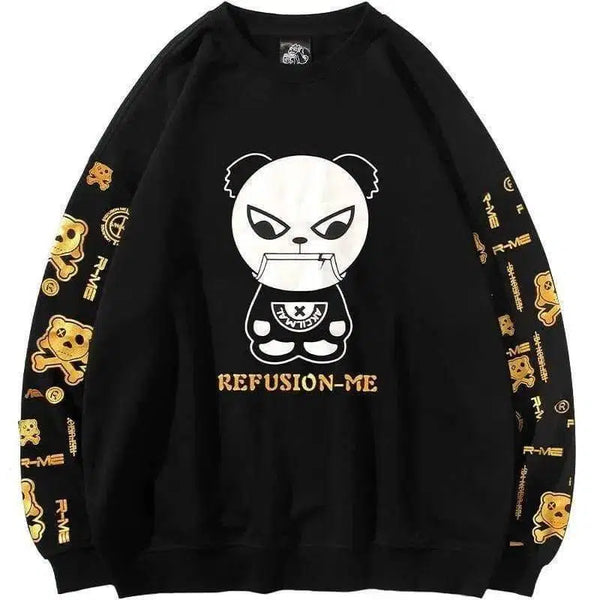 ホットスタンプラウンドネックパンダプリントスウェットシャツ