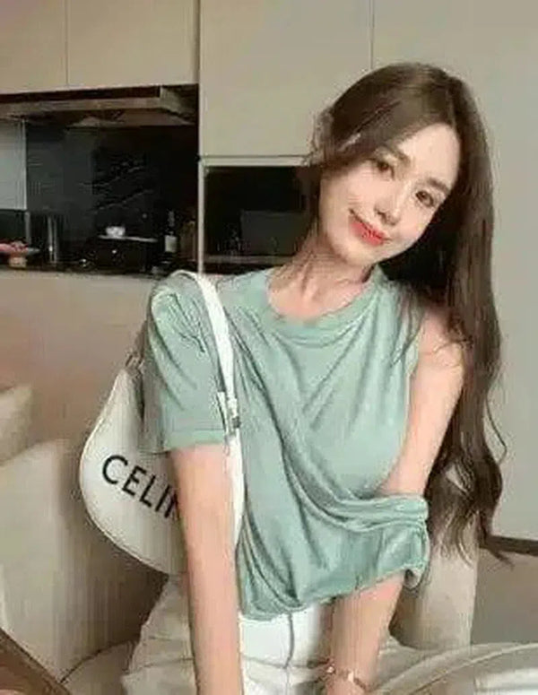 スタイリッシュな女性用カジュアルTシャツとトートバッグの組み合わせ