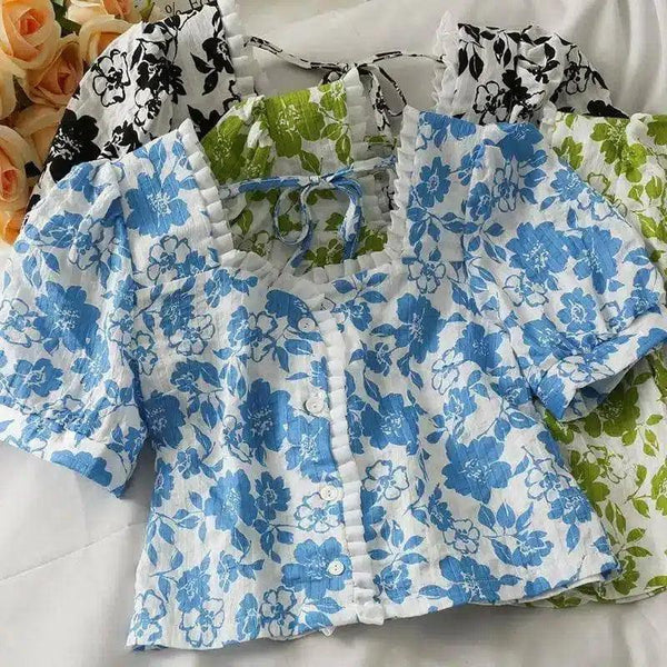 - 衣服の種類 花柄クロップドトップ