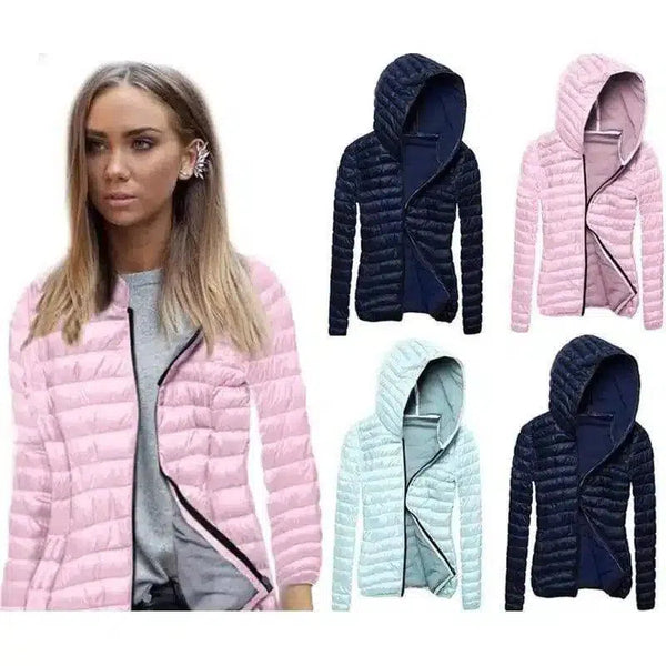 - ネックラインまたはショルダースタイル: ハイカラーフード付き