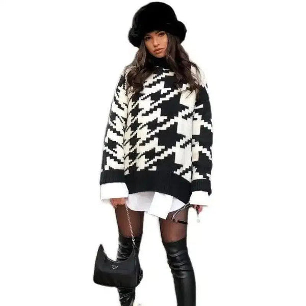 - フィット感:リラックスしたオーバーサイズ デザインデザイン:ブラックとホワイトの大胆な幾何学模様