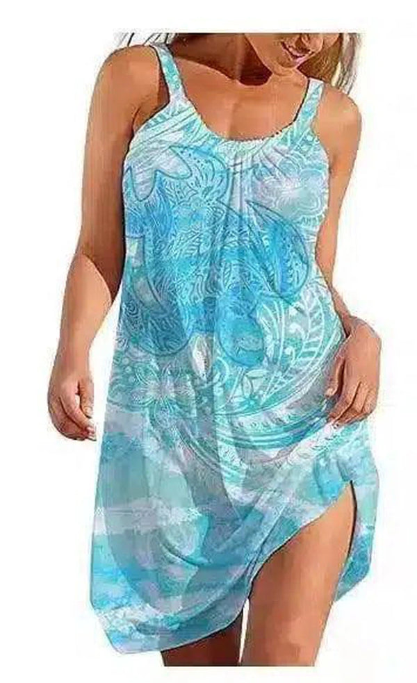 ノースリーブプリントビーチカバーアップドレス