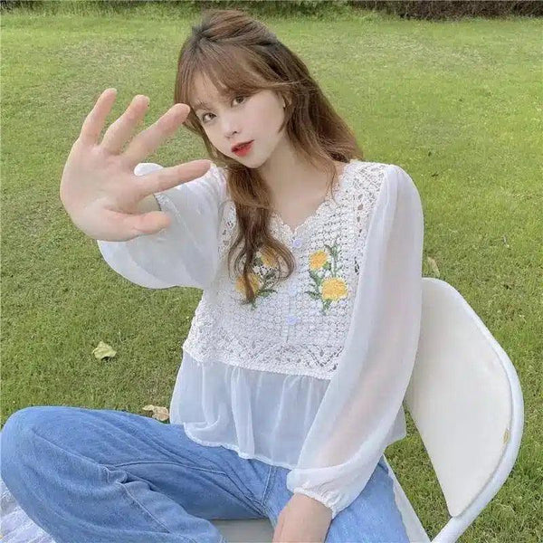 花柄レースのレディースカジュアルブラウス