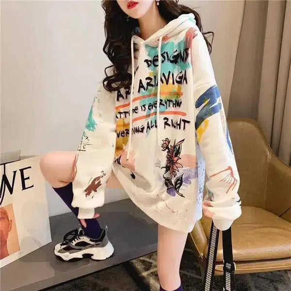 カジュアルウェアのためのグラフィックプリントオーバーサイズパーカー