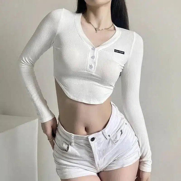 ボタンディテールのリブクロップトップ(ウィメンズ