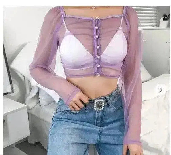 - 衣服の種類:シアーオーバーレイのレディースクロップドトップ