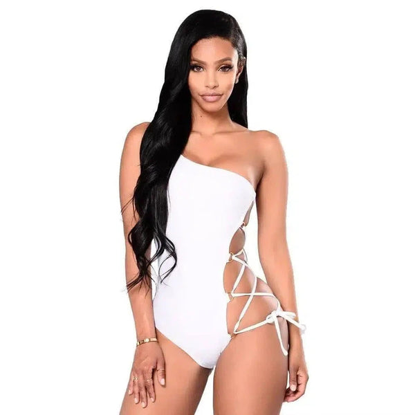 フープクロスストラップ付きワンショルダービキニ水着