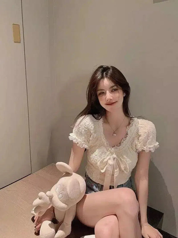 - 衣服の種類: ブラウス 袖丈: フリル付きの半袖