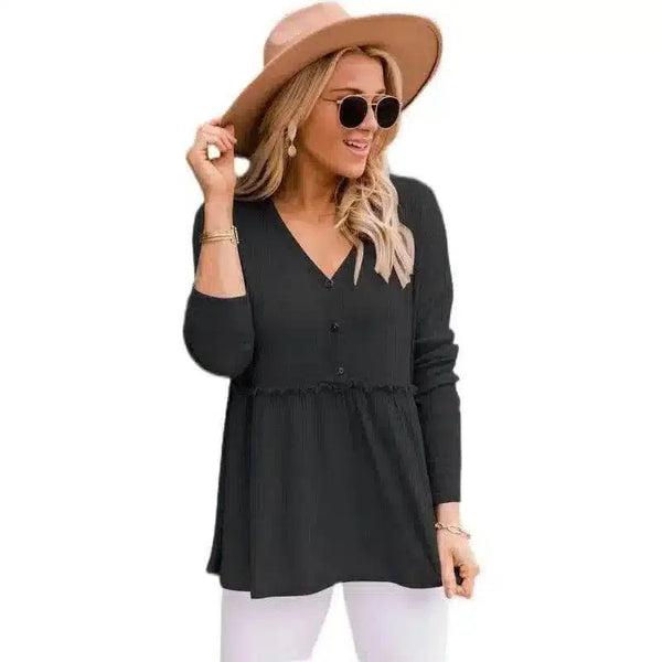 - フィット感: ウエストぺプラムのリラックスフィット その他の特徴:フロントボタンクロージャー