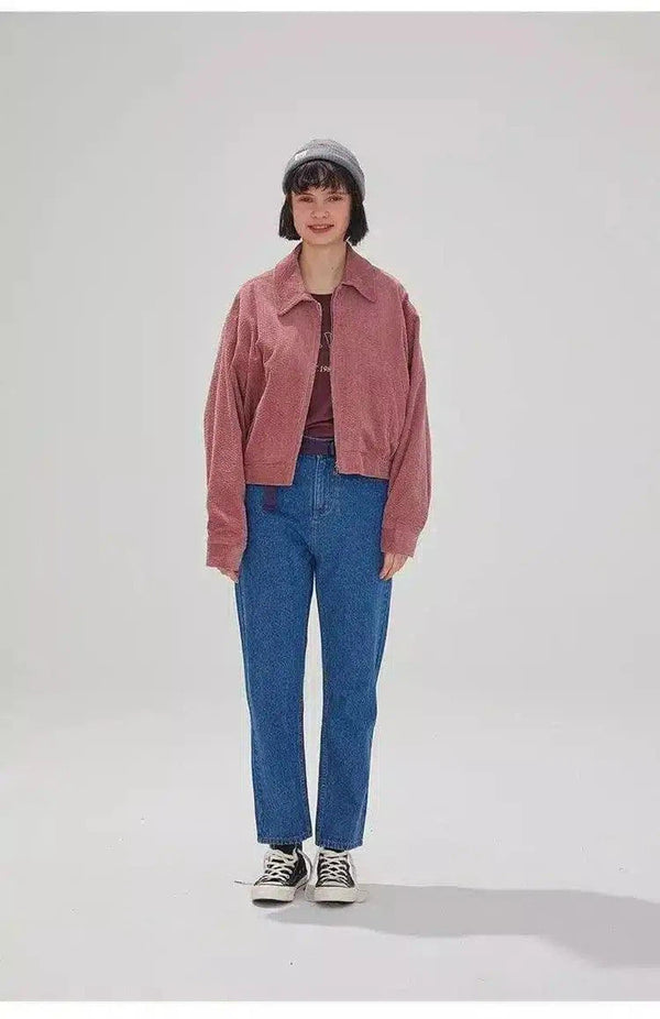 カジュアルなコーデュロイジャケットとリラックスフィットジーンズ
