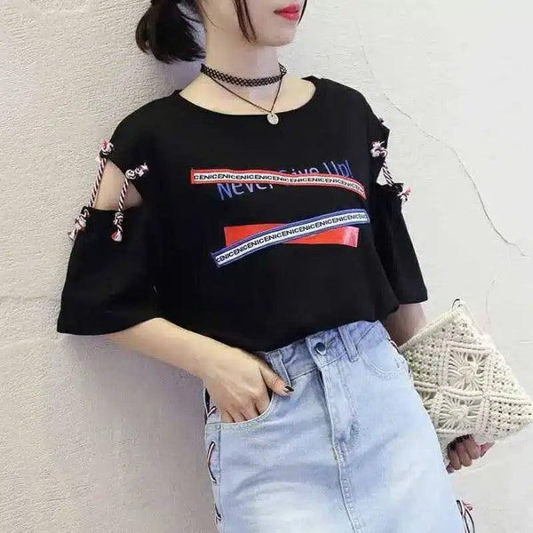 レディース・カットアウト・スリーブ・カジュアル・トップス