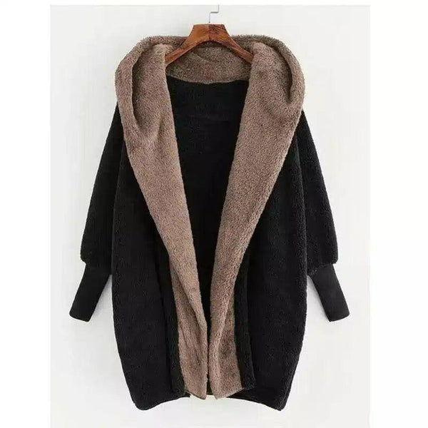 カラー・マッチング・フード・ルーズ・カーディガン・ジャケット