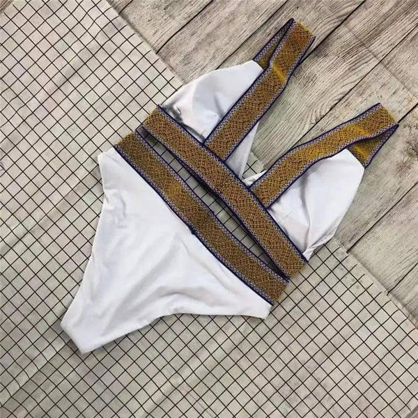 - スタイル:流行のハイウエストデザイン パターン:目を引く三角形のカラーマッチングの詳細
