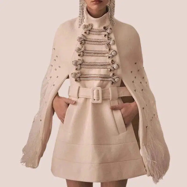 - 衣服の種類: エレガントなケープドレス 袖丈:流れるようなロングスリーブ